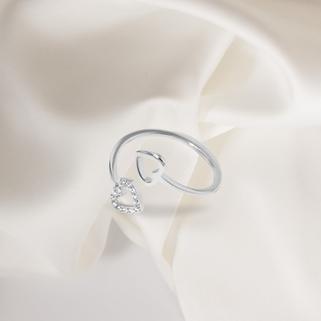 Prstan Ava ima klasično silhueto srca z gladkimi, simetričnimi linijami. Obdan z bleščečimi cirkoni, kjer lesketanje cirkonov poudarja teksturo.