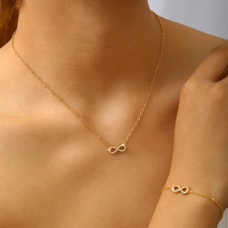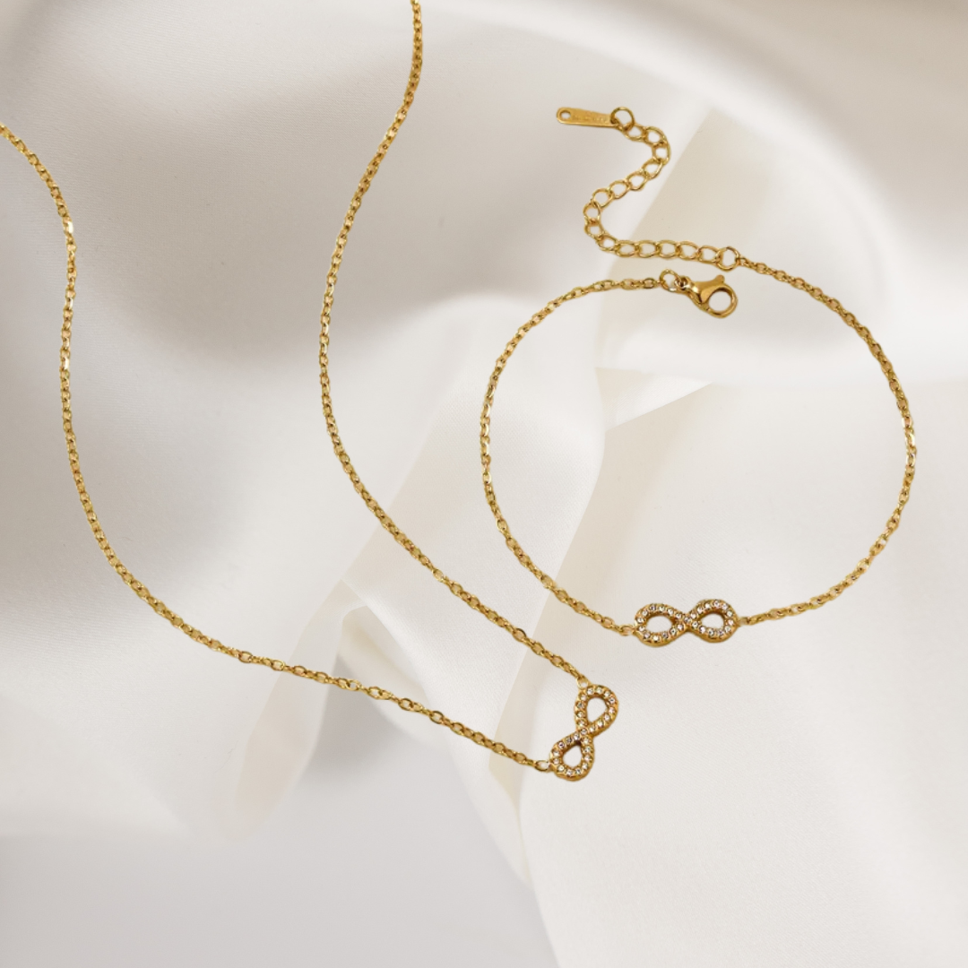 Kolekcija nakita, polna šarma in srčnega pridiha. Vsak kos nakita je osredotočen na bogat obesek v obliki neskončnosti z vdelanimi bleščečimi cirkoni. Ta kolekcija vključuje verižico in zapestnico.