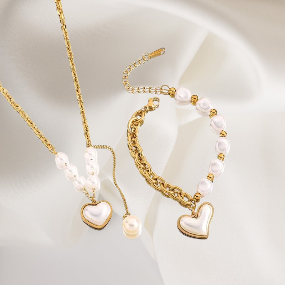 Kolekcija nakita, polna šarma in eksotičnega pridiha. Vsak kos nakita je osredotočen na bogato obarvan naravni beli kamen, uokvirjen z zlatim, zapleteno teksturiranim okvirjem, ki spominja na dragocen zaklad s starodavnega bazarja. Ta kolekcija vključuje verižico in zapestnico. Vsak kos nakita ima beli kamen v obliki srca, vpet v okvir in dodatno povezanimi biseri vzdolž verižice ali zapestnice.