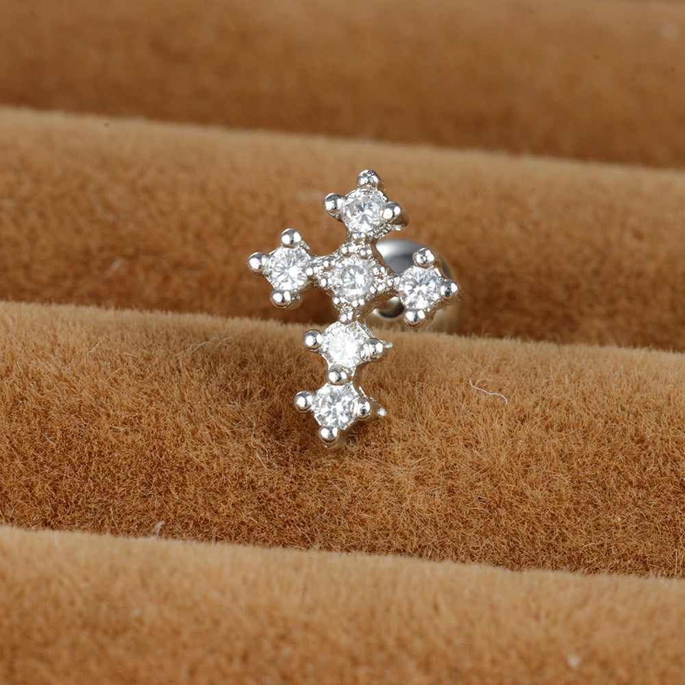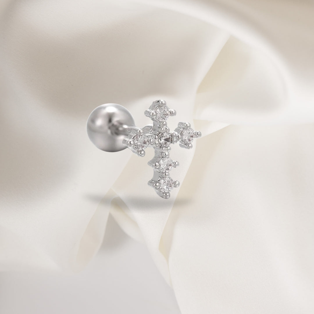 Uhani Elsie so klasični uhani s bleščečimi cirkoni, ki tvorijo križec in so obdani z bleščečim sijem. Njihova nežna oblika križca lepo poudari tudi preproste bluze ali pletenine s srečnim talismanom in eleganco.