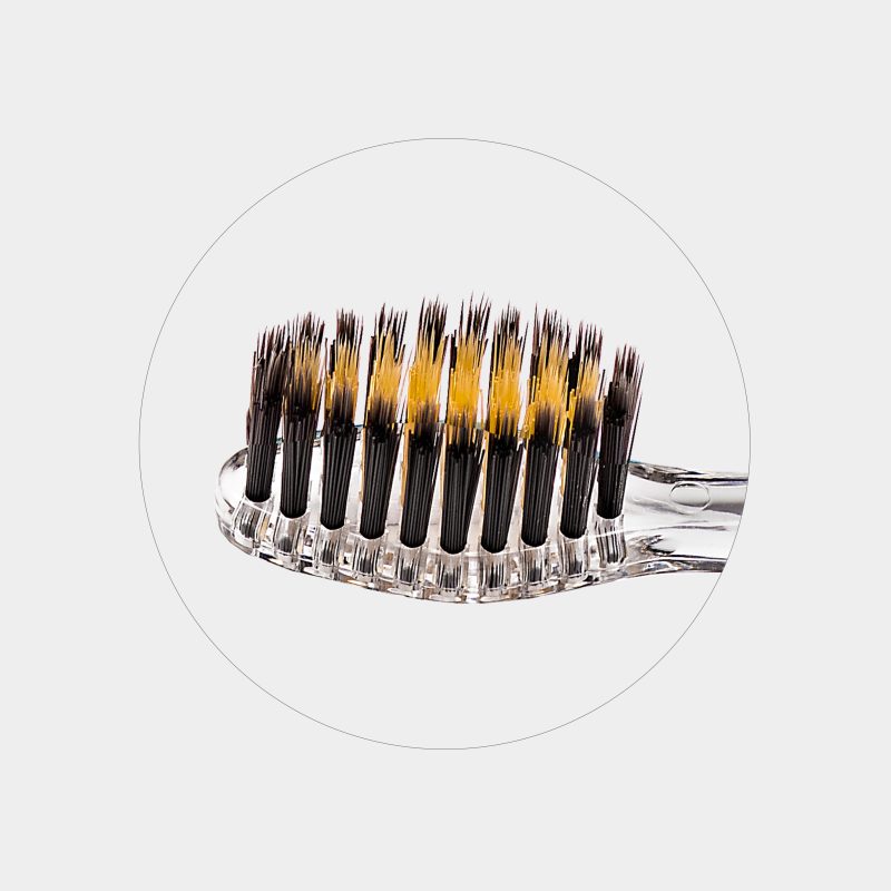 Ščetine teh zobnih ščetk so impregnirane z zlatom in bambusovim ogljem. Najboljša lastnost bambusovega oglja na madeže cigaret, kave in vina vam bo pomagala ohraniti belino vaših zob.
